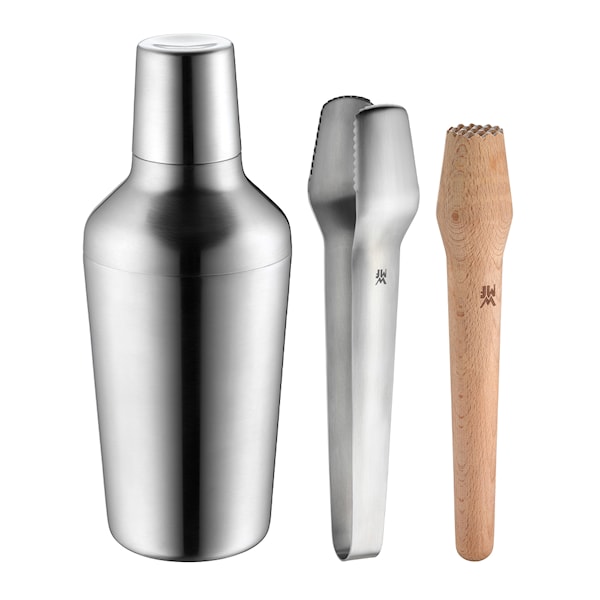 Med barsetet från WMF i 4 delar kan du när som helst blanda ihop en härlig drink som en äkta bartender. Uppsättningen innehåller allt du behöver för att servera dig själv eller dina vänner en riktigt god drink. När tillbehören inte används kan de enkelt förvaras inuti shakern.
