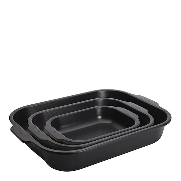 Woll Roast It ugnsformsset om 3 delar är ett måste för alla som vill ta sin matlagning till nästa nivå. Detta set ger dig inte bara flexibiliteten att hantera olika rätter med precision, utan också tryggheten att varje gång leverera perfekta resultat. Formarna är tillverkade av korrosionsbeständigt aluminiserat stål, vilket gör dem både robusta och hållbara. Med en tålighet mot temperaturer upp till 260 °C, klarar de allt från kraftig stekning till långsam bakning utan att kompromissa med prestanda.