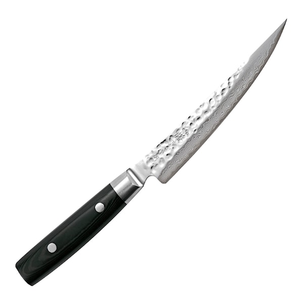 Zen Urbeningskniv 15 cm från Yaxell i 37 lager damaskerat stål är en urbeningskniv med ett styvt och relativt smalt blad. Modellen är perfekt när du exempelvis styckar en fläsksida eller benar ur en lammstek. Då är det viktigt att ha en tålig kniv, eftersom du hela tiden arbetar med bladet mot benen.
