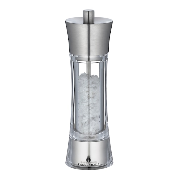 Denna saltkvarn ur serien Aachen från Zassenhaus är tillverkad i akryl och utrustad med ett kvarnverk i härdad keramik som är otroligt hållbart och resistent mot korrosion. Kvarnen har en stilren design som gör sig fin till alla bord och kök.