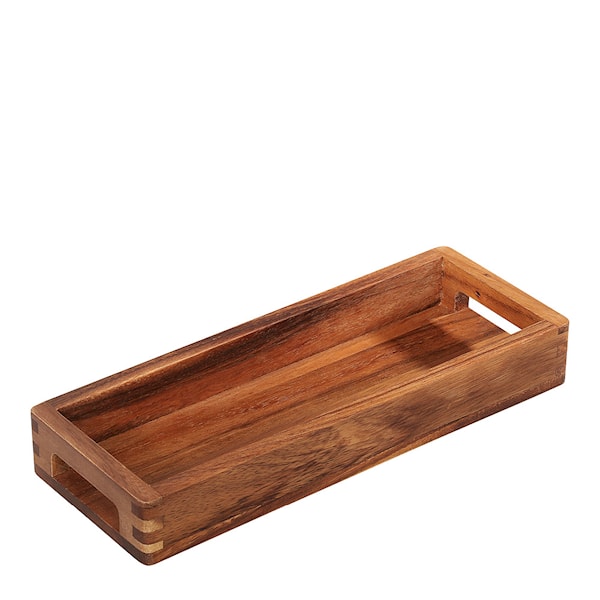 Serveringsbricka från Zassenhaus i vackert akaciaträ – ett stilfullt och mångsidigt tillskott till både kök och dukning. Denna modell mäter 32 x 12 x 4,5 cm och passar perfekt för servering av smårätter, snacks, kakor eller frukt. Brickan fungerar även utmärkt som ett dekorativt fat för tvål och handkräm i badrummet, eller för olja och vinäger i köket.