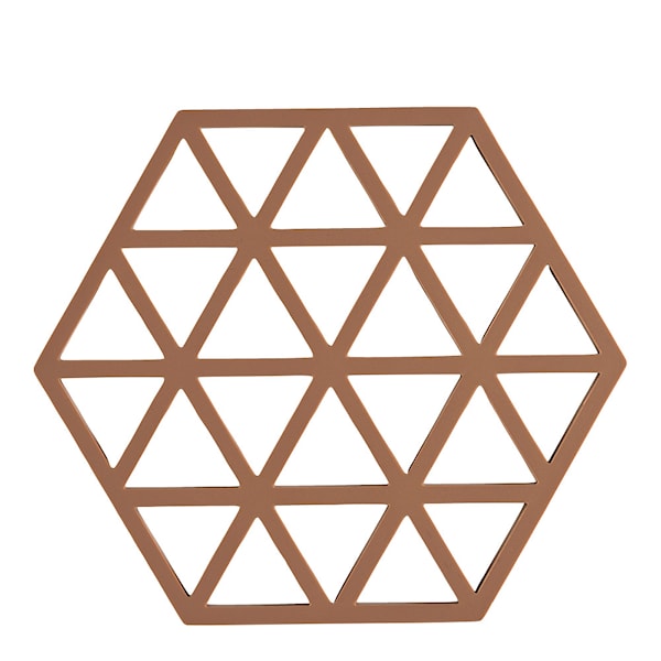 Triangles Grytunderlägg, 16 cm, från Zone är så grafiskt dekorativa att de lockar till att placera flera längs hela bordets längd, även utan att ha något att ställa på dem. Tillverkade av värmetålig silikon som klarar upp till 250 °C och kan enkelt diskas i diskmaskin. Med sina dimensioner på 16 x 14 x 0,9 cm erbjuder de både stil och funktion till ditt kök.