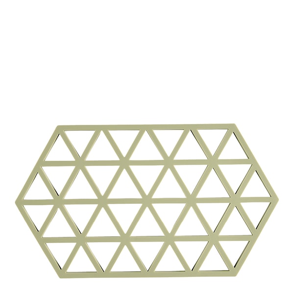 Triangles Grytunderlägg, 24 cm, från Zone är det perfekta valet för större fat och kastruller. Dessa grytunderlägg i silikon från Zone är så grafiskt vackra att de inte bara erbjuder funktion utan även dekorativ charm. Du kan med fördel placera ut flera av dem på bordet som ren dekoration. De är lämpliga för diskmaskin och värmebeständiga upp till 250 °C. Med sina dimensioner på 24 x 14 x 0,9 cm erbjuder de både stil och praktisk användning.