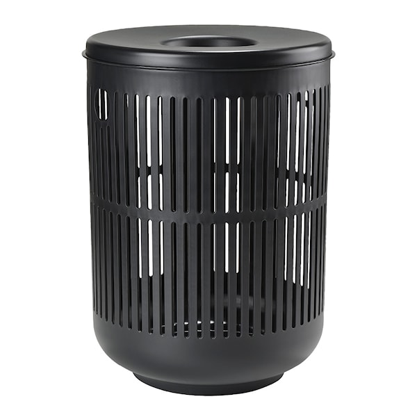 Locket lyfts enkelt av vid tömning, medan det praktiska hålet i mitten gör det möjligt att lägga mindre plagg direkt i korgen utan att öppna den helt. På sidorna finns två handtag som gör det lätt att flytta korgen mellan rum vid behov.