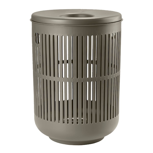 Locket lyfts enkelt av vid tömning, medan det praktiska hålet i mitten gör det möjligt att lägga mindre plagg direkt i korgen utan att öppna den helt. På sidorna finns två handtag som gör det lätt att flytta korgen mellan rum vid behov.