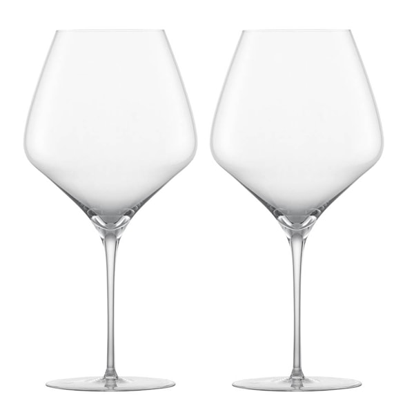 Alloro Burgundy Rödvinsglas 95 cl 2-pack från Zwiesel skapar intensiv syrekontakt när vinet snurras i sin stora, lökformade skål.