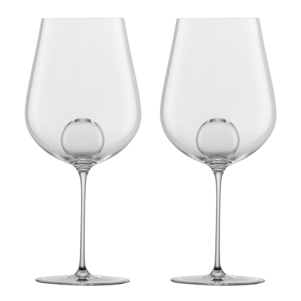 Zwiesel Air Sense rödvinsglas har en kapacitet på 63 cl och levereras i set om två. Glasen är framtagna i samarbete med Bernadotte & Kylberg och utmärker sig med en integrerad dekanteringssfär i botten. Denna detalj främjar luftning av vinet och gör att doft och smak öppnar sig snabbare och mer effektivt i glaset.