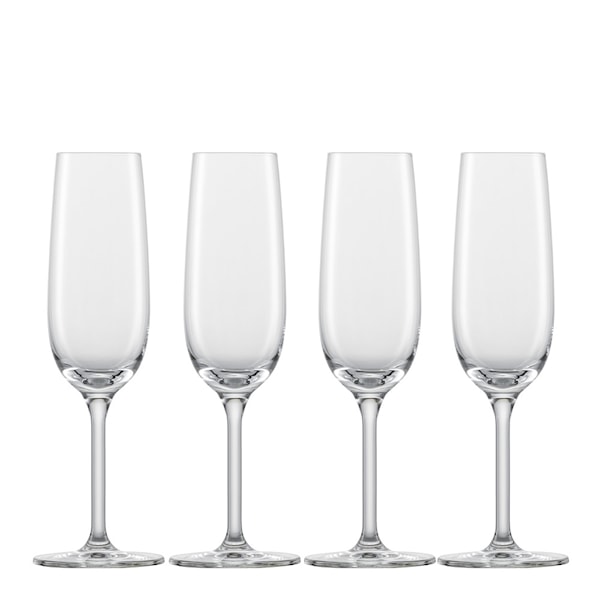 For You champagneglas från Zwiesel rymmer 21 cl och levereras i set om fyra. Glaset har en tidlös form som passar både vid festliga tillfällen och till vardags. Den smala öppningen och den balanserade formen bevarar bubblorna och lyfter fram smaken i mousserande vin.
