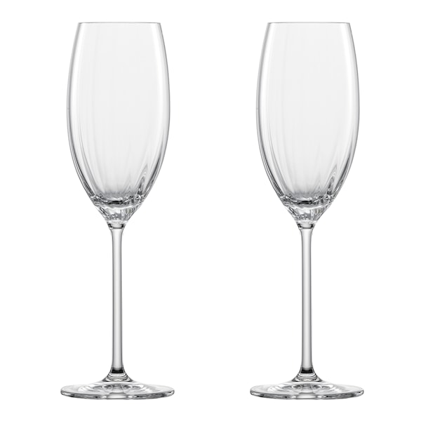 Champagneglas från Zweisel och serien Prizma. Prizma är designad för att erbjuda den högsta nivån av sensorisk njutning genom att ge vin tillräckligt med utrymme för att utveckla sin fulla arom. Prizma champagneglas skapar garanterat en sprudlande upplevelse.
