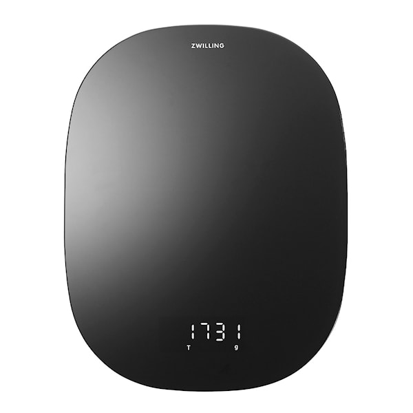 En snygg digital köksvåg ur serien Enfinigy från Zwilling med inbyggd LCD-display. Denna stilrena köksvåg hjälper dig att mäta exakta resultat upp till 10 kg. Vågen har en vägningsyta av glas som är lätt att rengöra vilket gör att du kan väga råvaror direkt på ytan och slippa ta fram skålar och tallrikar. Med denna våg kan du väga stora mängder tack vare den stora vägningsytan som även ser till att du alltid kan hålla koll på LCD-displayen och måtten. Använd även tara-funktionen för att enklare väga ingredienser i större behållare och skålar.