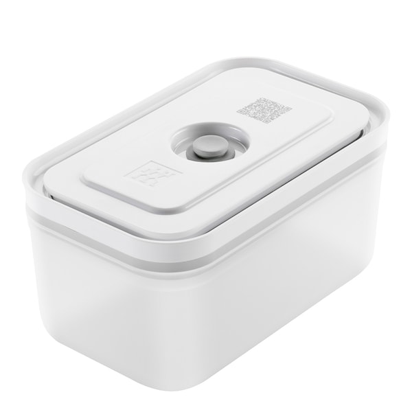 Zwilling Fresh & Save vakuumlåda M med lock 1,1 L är en praktisk förvaringslåda för dig som vill ta hand om maten och bevara smaken längre. Den smarta vakuumfunktionen förhindrar att luft och fukt påverkar maten, vilket ger råvaror och rester upp till fem gånger längre hållbarhet jämfört med vanlig förvaring. Den rektangulära lådan är tillverkad i semitransparent plast utan tillsatt BPA, med ett tätslutande lock i vitt och grått med silikonpackning.