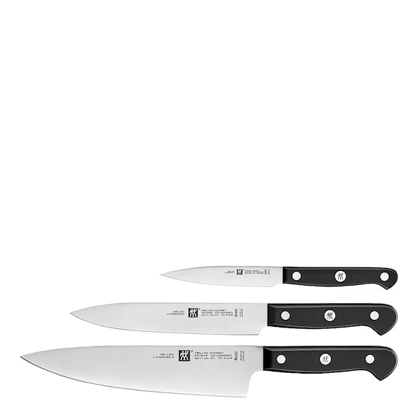 Ett utmärkt knivset för nya hemmet eller för att ge som gåva till bröllopsparet! Detta set ger dig allt du behöver för att skala, filéa, skära och förbereda kött, fisk och grönsaker. Du får med en behändig skalkniv som passar till att skära och skala frukt, grönsaker, fisk och kött medans kockkniven är optimal för att skära stora bitar kött och även frukt och grönsaker. Filékniven är en blandning av filékniv och köttknivför att skära, skiva, strimla och avlägsna fett från kött utan problem.