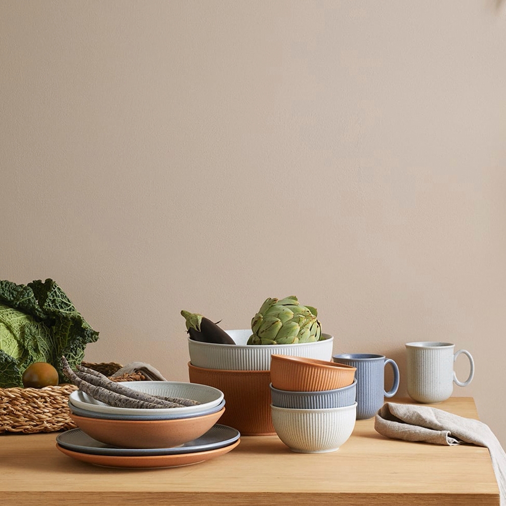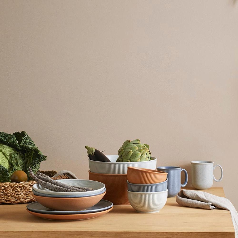 Upptäck den eleganta enkelheten hos Thomas Clay, en serie från Rosenthal som förenar tidlös design med hantverkskänsla. Med sin diskreta spräckliga yta och rustika charm påminner porslinet om naturlig lera. Här hittar du allt från stilrena koppar med fat och espressokoppar till funktionella skålar och assietter – perfekt för den moderna dukningen.