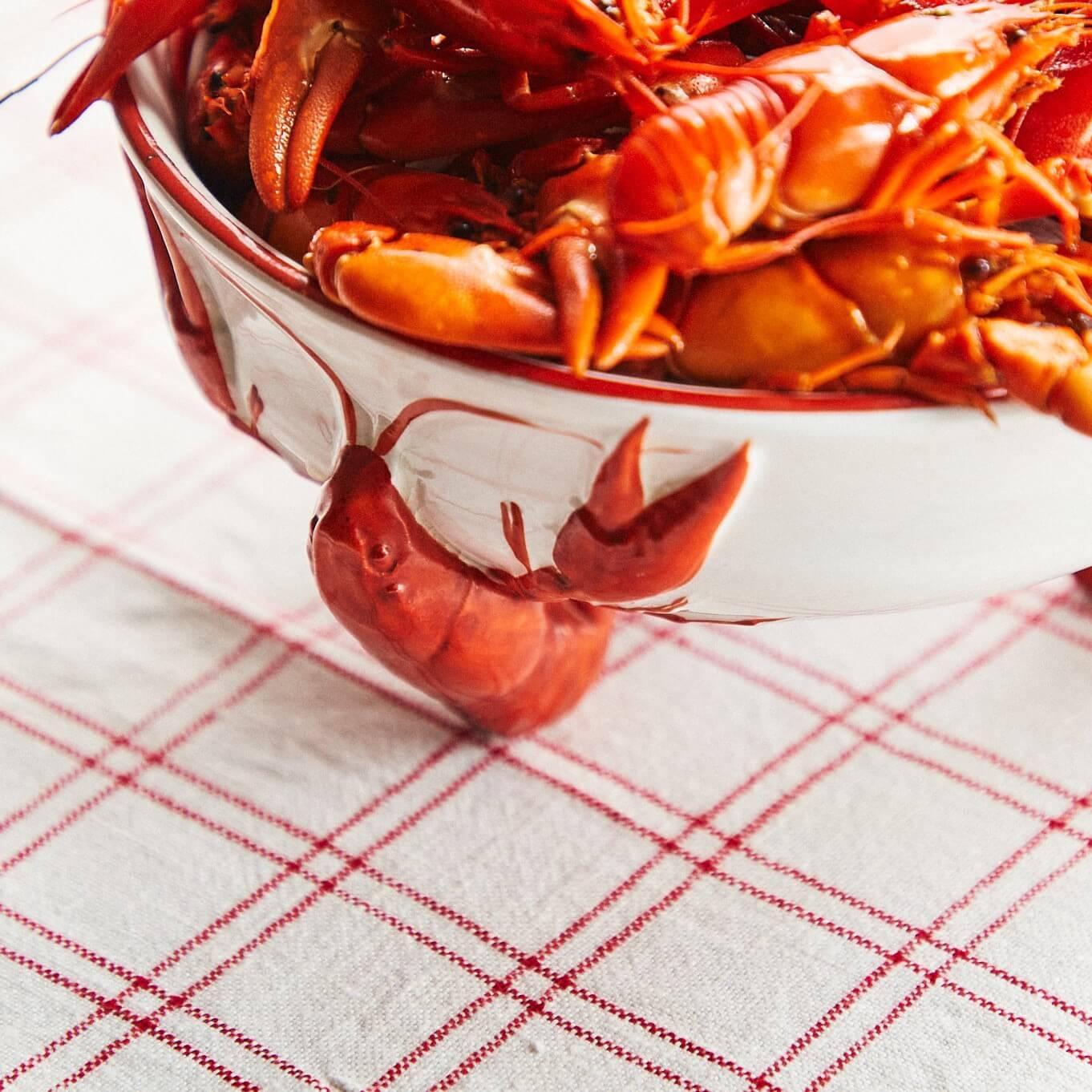 Det finns en hel del frågetecken kring vem som har formgivit kräftservisen i jugendstil från år 1900 producerad av Rörstrand. Den tillskrivits ofta porslinsfabrikens dåvarande stjärndesigner Alf Wallander, utan att det finns några arkivanteckningar som styrker detta.